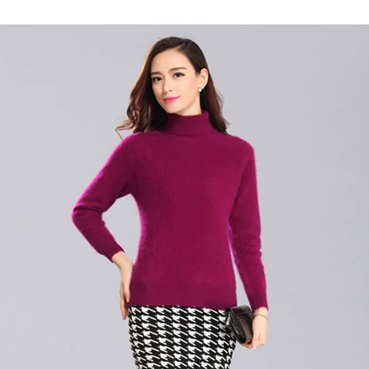 Women Sweater Solid Color 100% Mink Cashmere Turtleneck Knitted Pullovers Slim Soft Warm Female Long Sleeve Sweater
